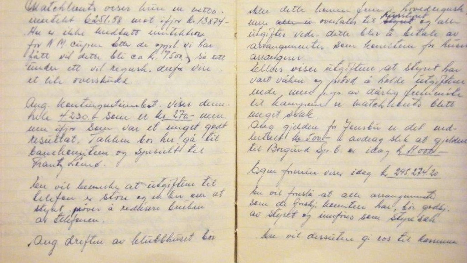 Også utgifter til festligheter hadde revisjonen bemerkninger til: «Sådan som tiderne nu er og som forholdene ligger an mht banekonsession og klubbens gjeld vil vi fraråde at klubbens regnskap belastes festutgifter».