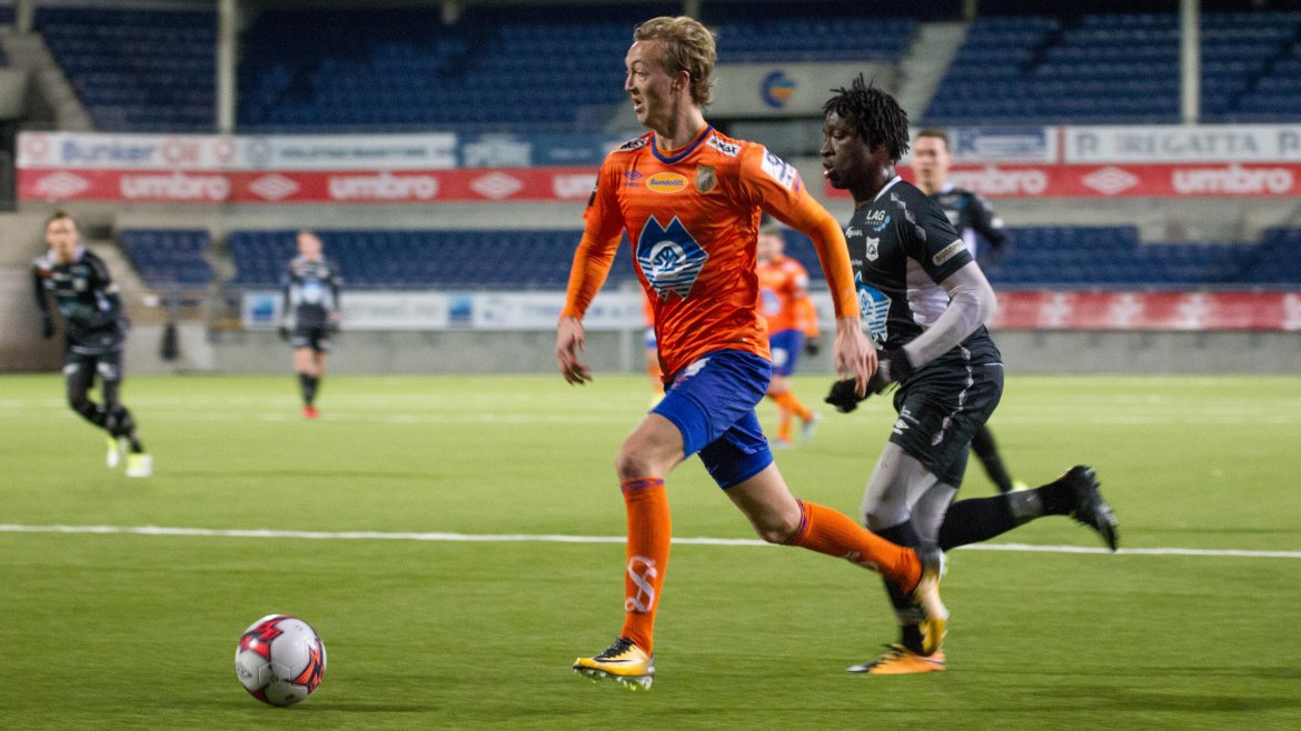 Brattvåg åpnet bra, og ofte ble tempoet til de gule og blå en liten utfordring for AaFK. Gjestene var farlig frempå etter sju minutter, men skuddet fra Haakon Leine strøk AaFK-keeper Tarjei Omenås’ venstre stolpe. Bare tre minutter senere fikk Vebjørn Hoff relativt god tid. 21-åringen takket for sjansen, og måket inn 1-0 fra 16 meter. Ikke lenge før pause gikk Holmbert Fridjonsson i bakken etter en duell med Brattvåg-keeper Neydson da Silva. Islendingen satte straffen sikkert, og dermed gikk de oransje krigerne til pause med 2-0.