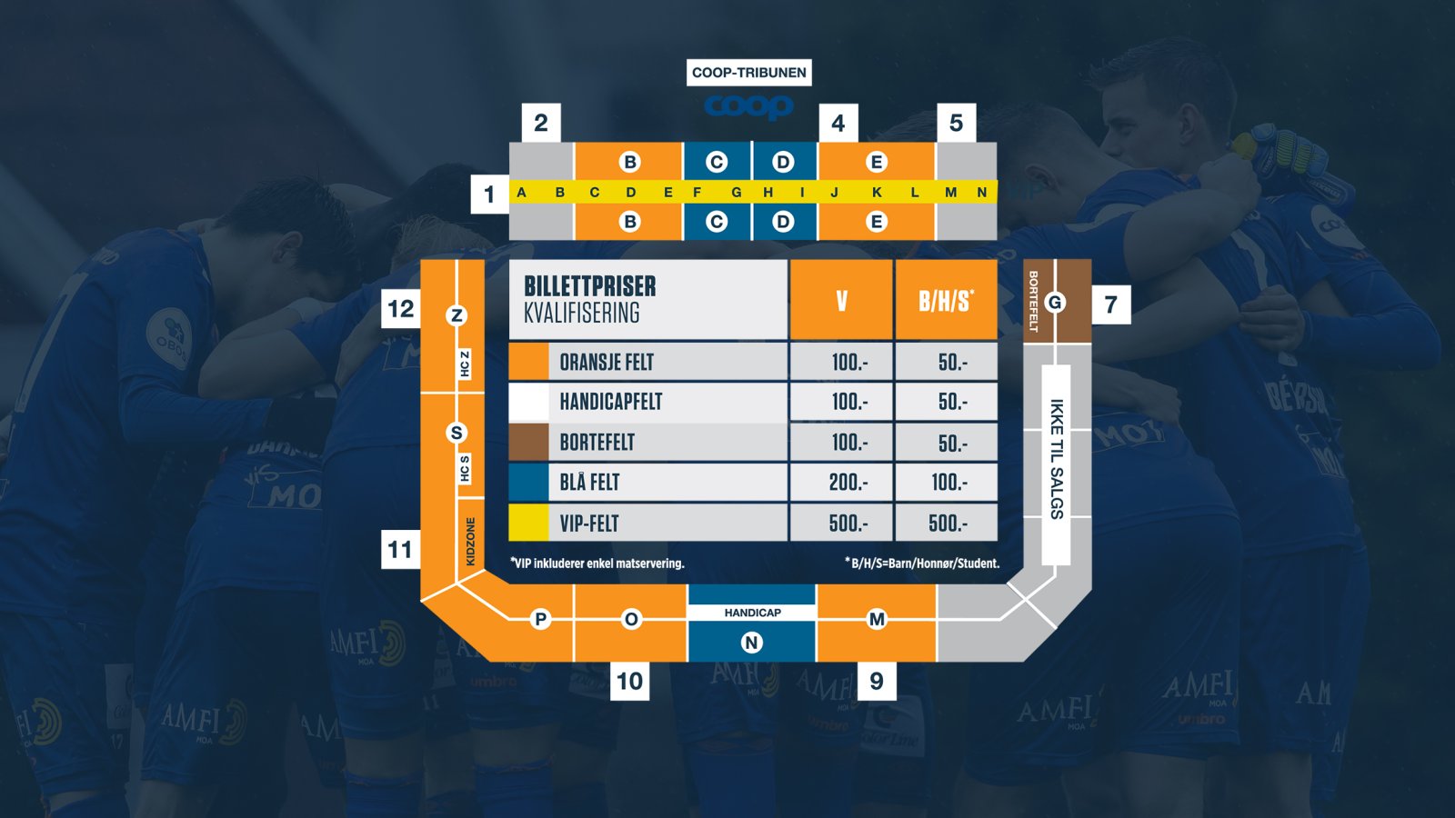 Til første kvalik-runde har vi redusert billettprisene for å få flest mulig av dere på kamp. Voksenbillettene koster mellom 100 og 200 kroner, mens barn, honnør og studenter kan sikre seg billetter helt ned i 50 kroner. VIP-billetter koster 500 kroner.