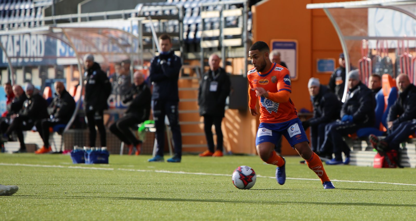 Klokka 15.30 blåser dommeren i fløyta og markerer at kampen mellom Kristiansund og Aalesund er i gang. Lars Bohinen og hans team har kommet frem til en startellever: