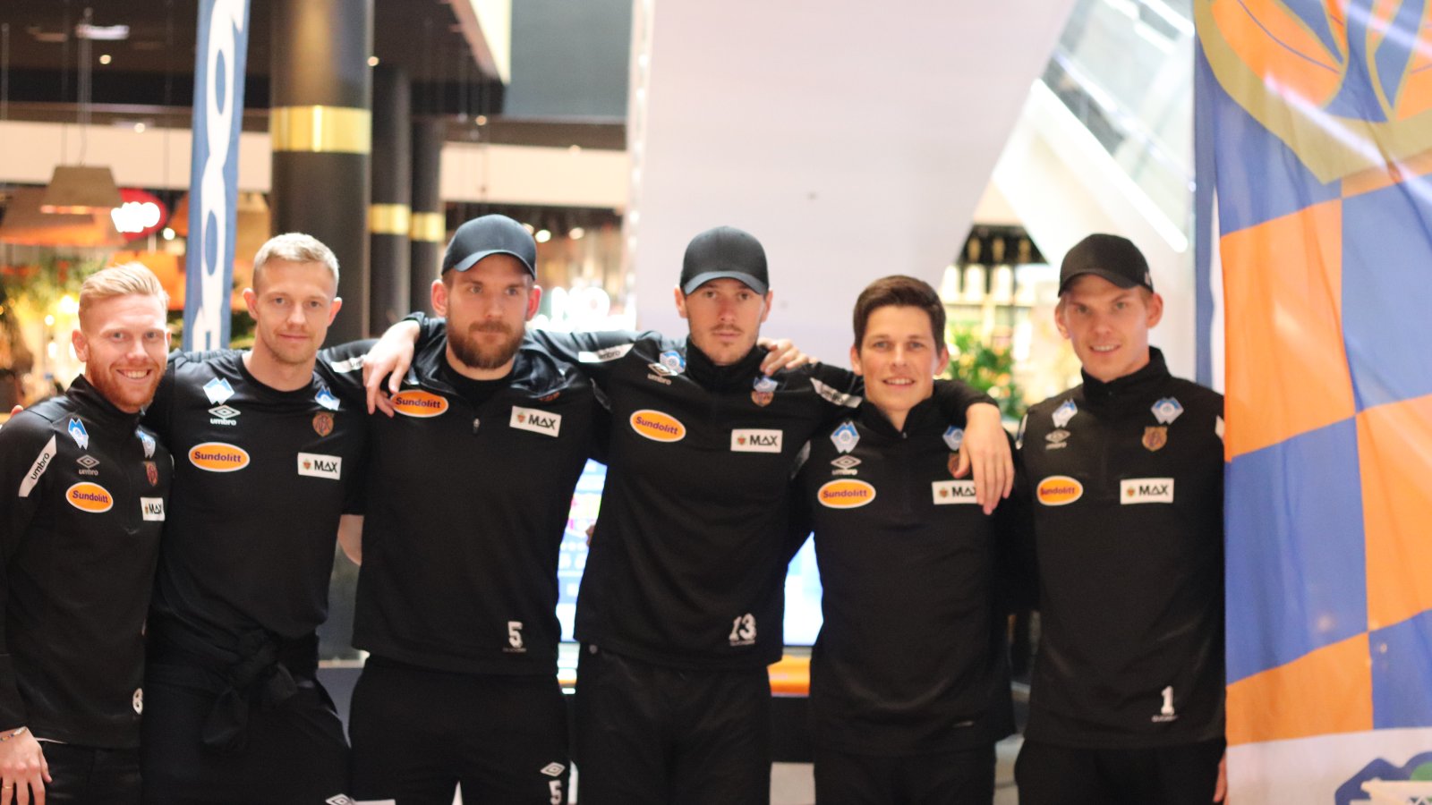Både spillerne og AaFK-tilhengerne var i perlehumør da vi farget AMFI Moa oransje og blått.