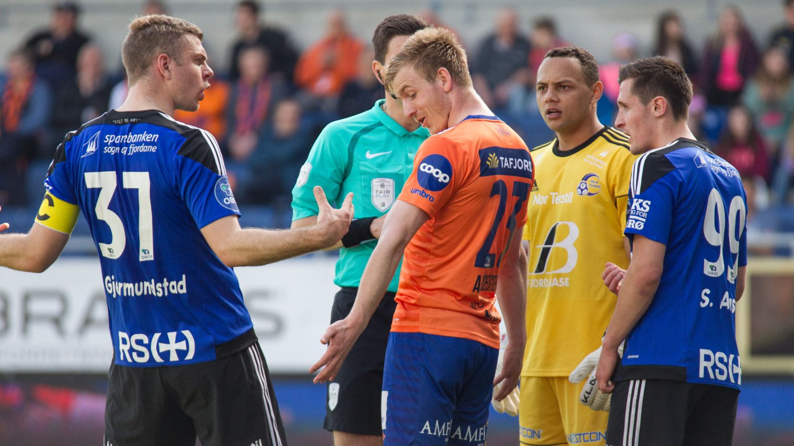 På benken sitter Fredrik Opdahl, Ståle Steen Sæthre, Kaj Ramsteijn, Håvard Mork Breivik, Tobias Sagli, Tega George, Markus Seehusen Karlsbakk, Pape Habib Gueye og Holmbert Fridjonsson.