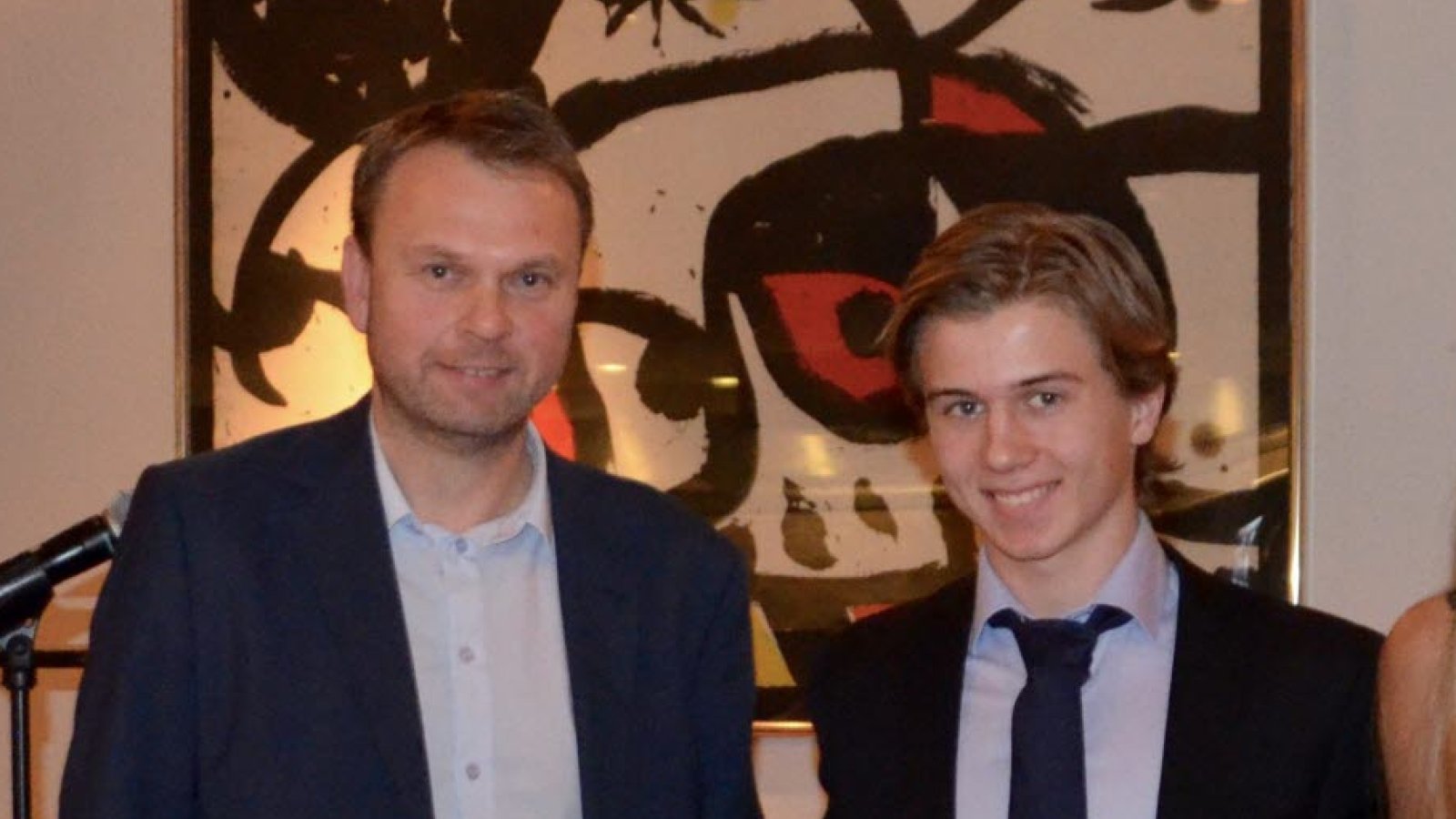 Markedssjef Ove Skjeret fra Sparebanken Møre overrakte stipendet til de to talentfulle ungdommene.