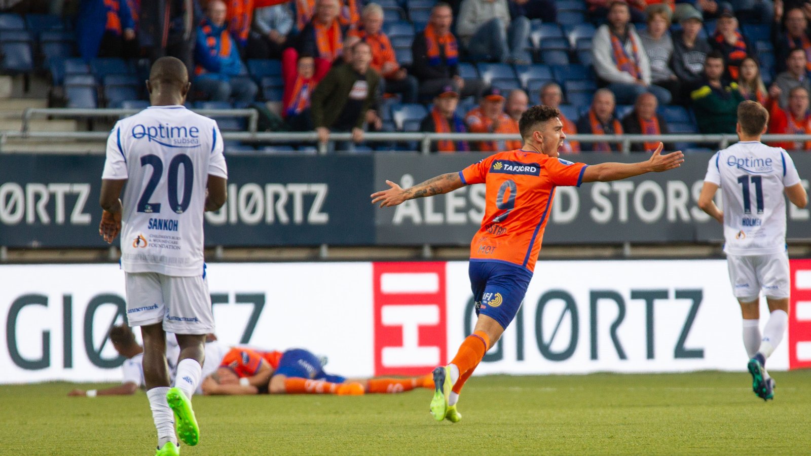 Det ble hett i åpningsminuttene på Color Line Stadion søndag kveld. Etter fem minutter møtte Torbjørn Agdestein et perfekt slått innlegg fra Niklas Castro med pannebrasken. Den målhungrige stordabuen var meget god da han stanget inn 1-0 til ørdøvende jubel fra publikum. Kun minuttet etter utlignet Marco Tagbajumi til 1-1. Protestene blant AaFK-spillerne var store, da de mente spillet burde vært avblåst i forkant.