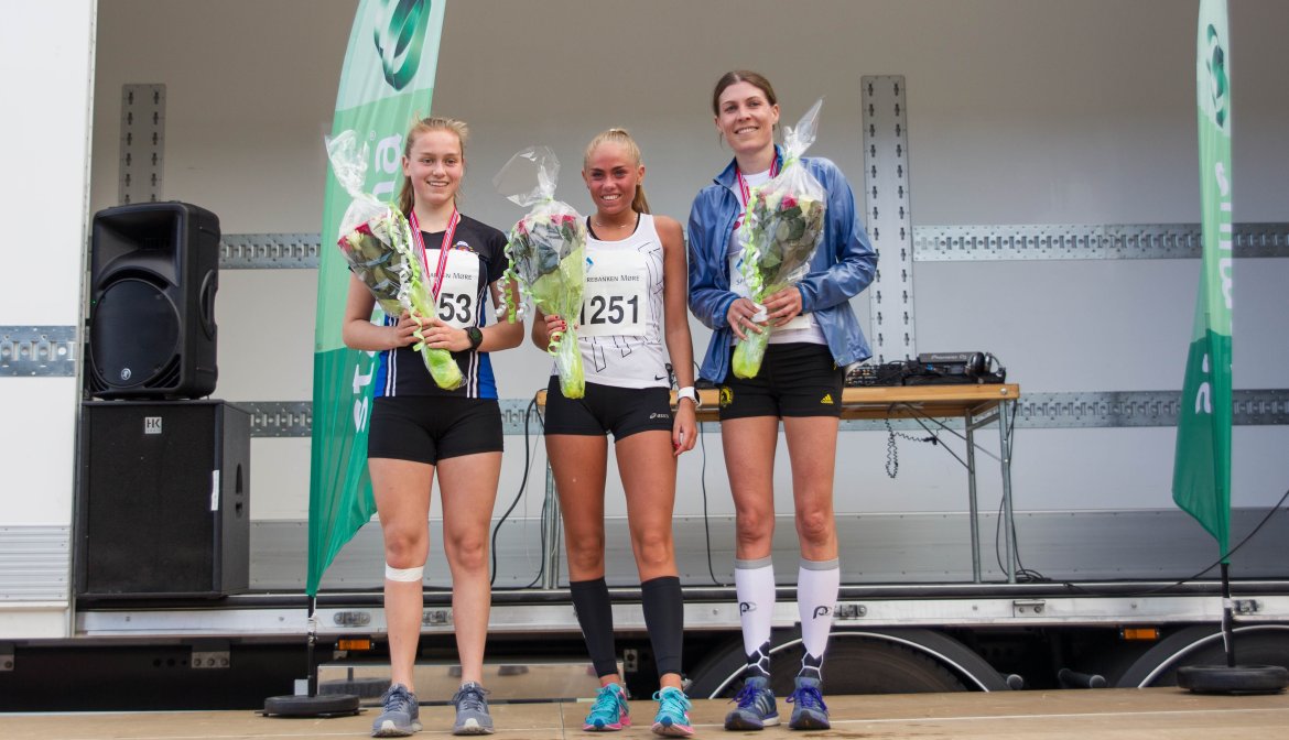 De tre som løpte seg inn til pallplassering var Amalie Eida (21.04, i midten), Ingrid Leore (21.19, til høyre) og Sunniva Vaksdal Seljeseth (23.16, til venstre). Alle fikk gratulasjoner, goodieybags og medalje utlevert av årets flotte harer og IL Valder.