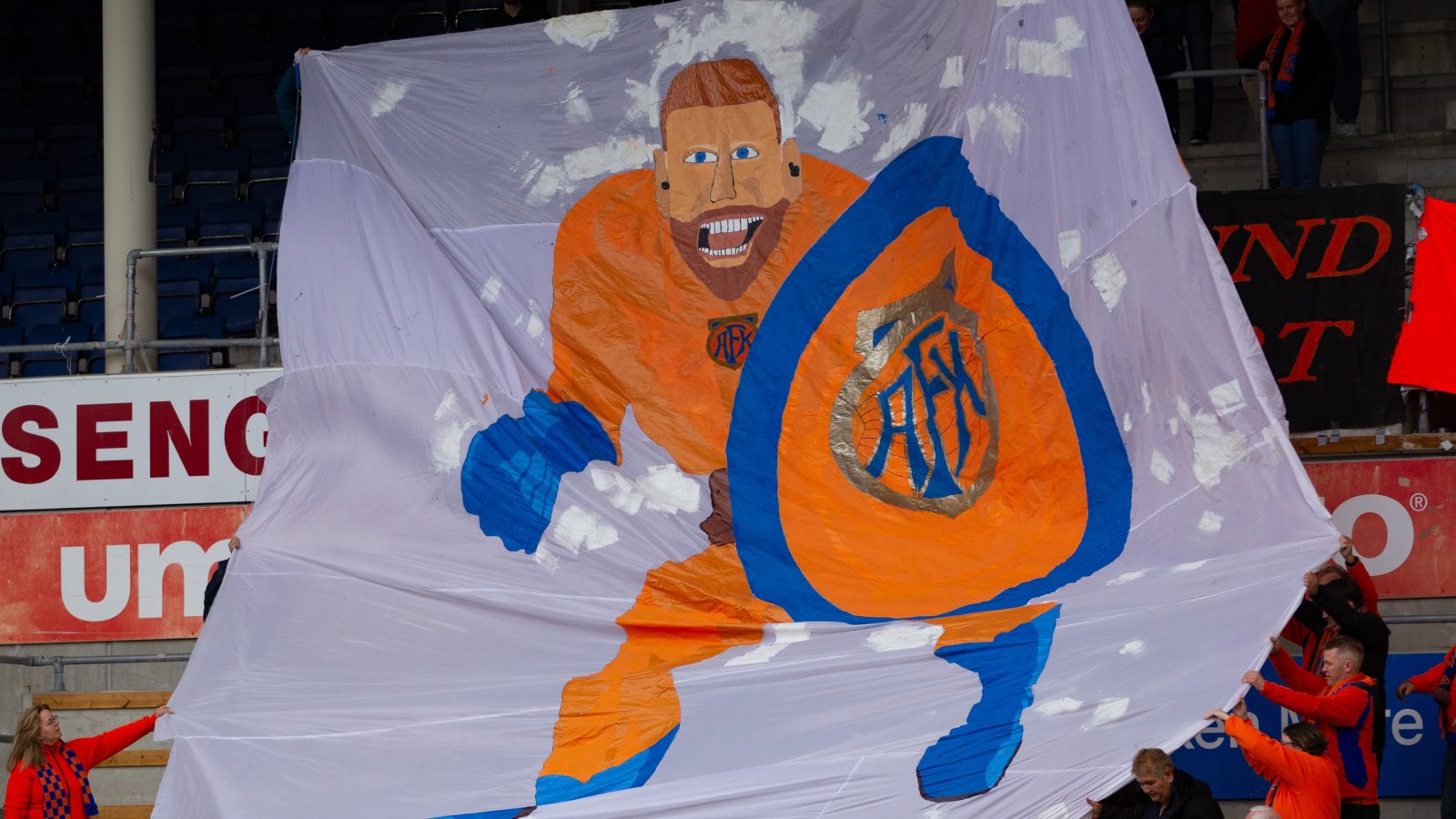 I to uker hadde en ivrig gjeng fra Stormen jobbet med et gedigent banner som skulle brukes i det spillerne entret bana mot Sarpsborg 08 søndag. Tribuneansvarlig i supporterklubben, Steffen Stette, ville i forkant av kampen ikke røpe hvilken spiller som kom til å pryde det sju ganger ni meter store banneret.