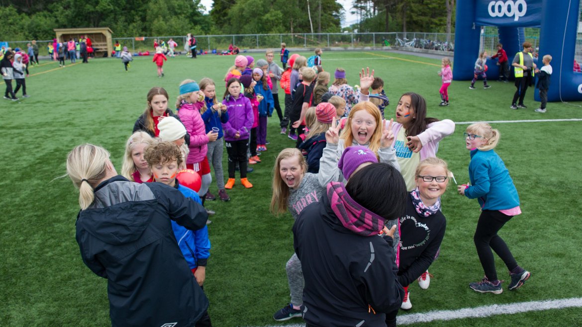 Det ble mye lek og moro sammen med barna etter seieren mot Sandnes Ulf.