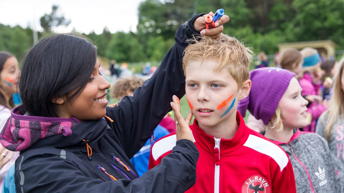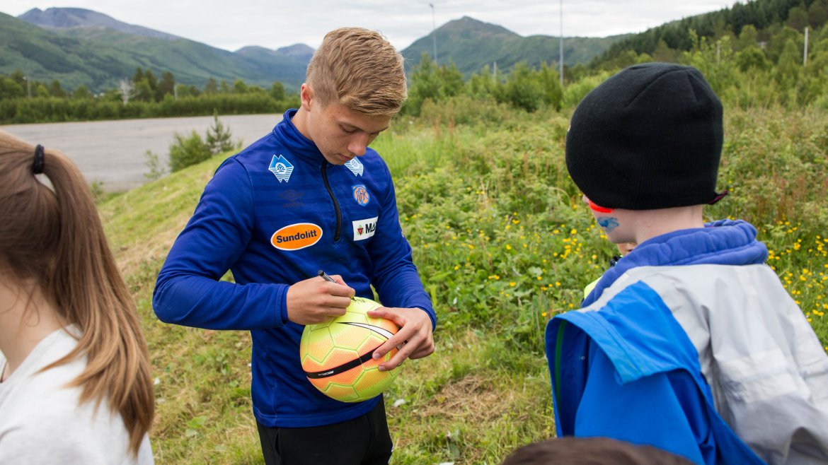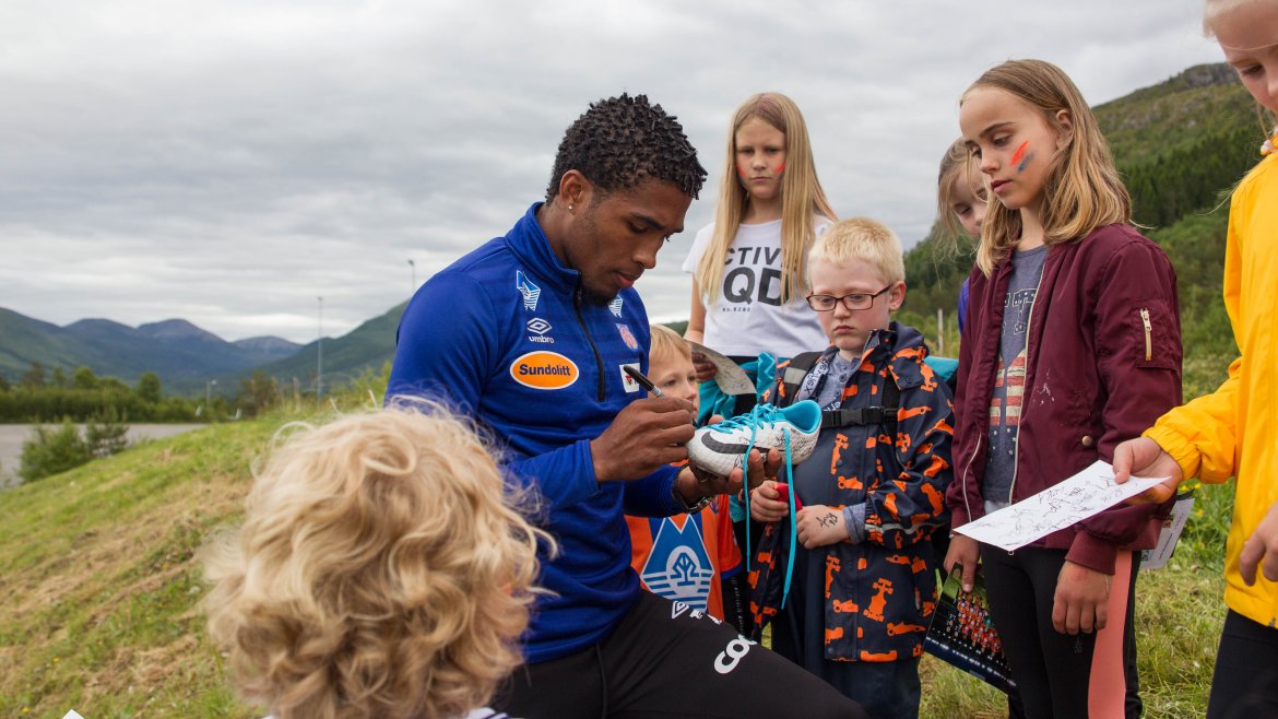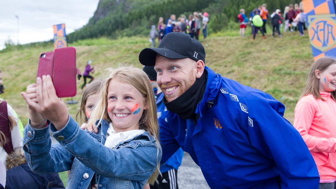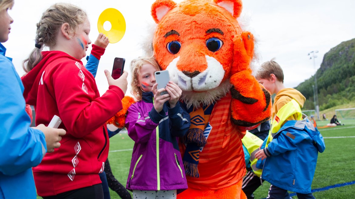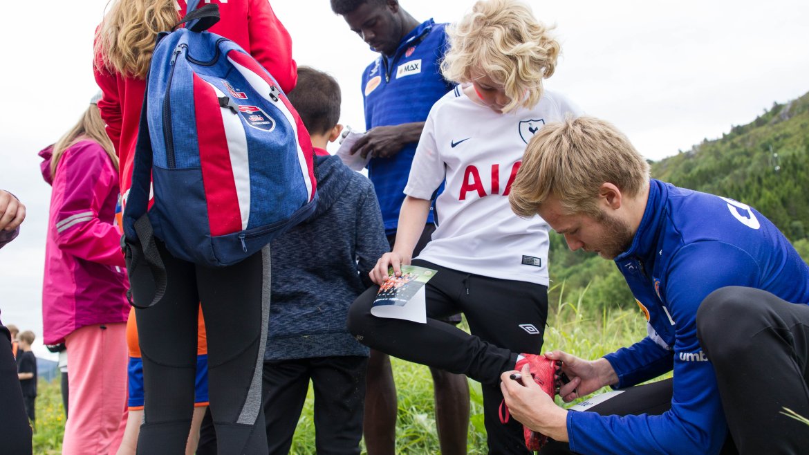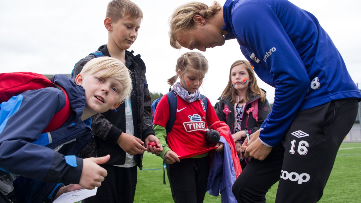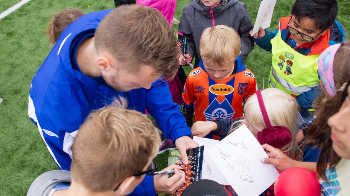 Barna fikk også god tid sammen med AaFK-spillerne, som stilte opp til fotografering, skrev autografer og snakket fotball med de ivrige unge jentene og guttene.