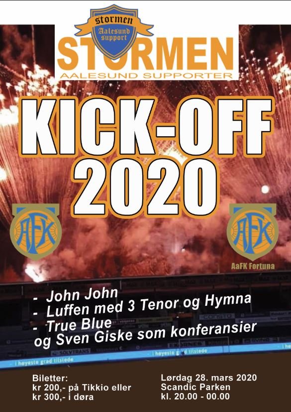 - John John, True Blue, Luffen og de tre tenorer står for musikken. Sven Giske skal lede showet, hvor årets AaFK- og AaFK Fortuna-spillere skal presenteres. I tillegg blir det intervjuer fra scena, forteller Caroline Nogva i Stormen.