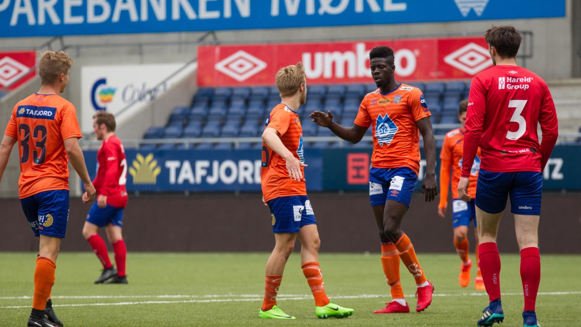 Hareid reduserte ved Henrik Holstad, før hjemmelaget scoret fire til før pause. Emil Solnørdal satte to, mens Anders Myking Waagan fullførte sitt hat trick og sørget for 7-1. Pape Habib Guye økte til 8-1 før dommer Richard Olsen sendte lagene i garderobene.