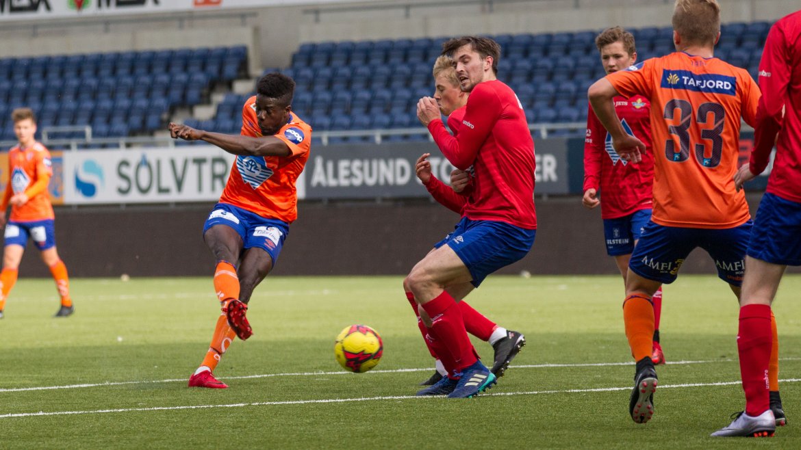 Serieleder Aalesund 2 tok imot Hareid til oppgjør denne småkjølige kvelden. Det tok ikke lang tid før publikum fikk varmen i seg. Ett minutt og 40 sekunder tok det før Pape Habib Gueye fant veien til nettmaskene. 1-0 på Color Line Stadion ble etterfulgt av hele sju resten av omgangen, seks av dem til hjemmelaget.