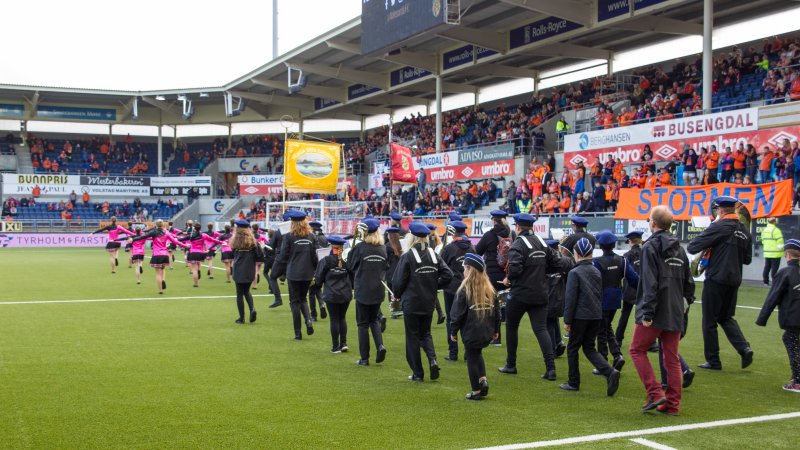 K - Korps. I år fikk vi hjemmekamp 16. mai. Stor stemning da Hessa og Aspøy skolemusikkorps spilte nasjonalsangen før kampen.