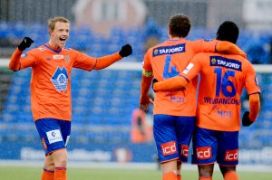 Peter Orry Larsen jubler etter den andre scoringen da vi slo Sarpsborg 08 2-0 i 2013. I kveld har vi sjansen til å ende en ni år gammel poengtørke.
