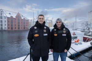 Smilene sier det meste. Selv ikke de typiske sunnmørsbygene påvirker humøret eller inntrykket Petar og Besim har av klubben og byen.