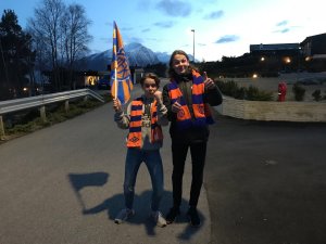Fredrik og Elias går omtrent kommunen på langs for laget i sitt hjerte. De spreke guttene er allerede på vei til stadion.